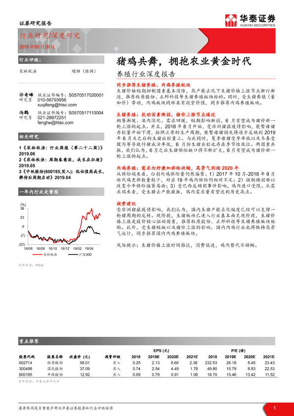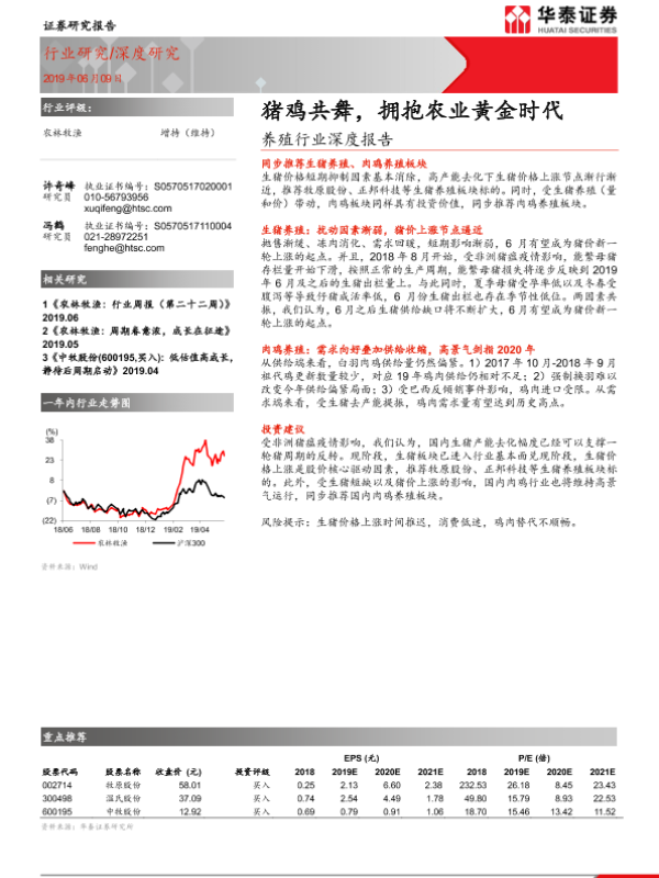 【华泰证券】【20190609】20190609-华泰证券-养殖行业深度报告:猪鸡共舞,拥抱农业黄金时代-15页
