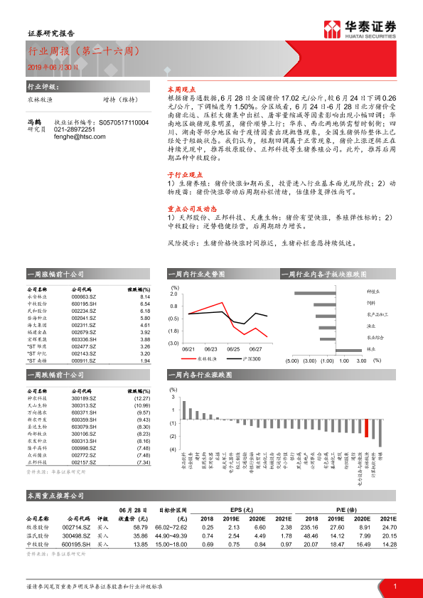 【华泰证券】【20190630】20190630-华泰证券-农林牧渔行业周报(第二十六周)-13页