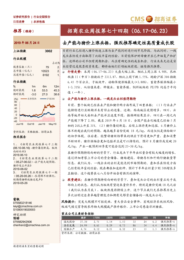 【海通证券】【20190624】招商农业周报第七十四期:去产能与猪价上涨共振,强烈推荐确定性高质量成长股-25页