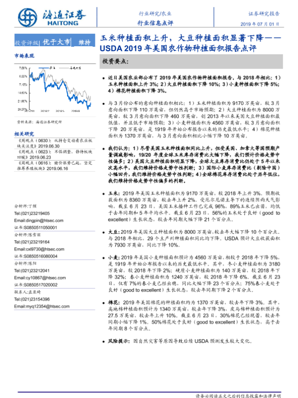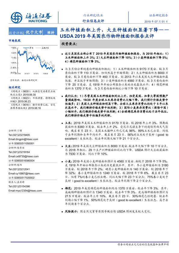 【海通证券】【20190701】USDA2019年美国农作物种植面积报告点评:玉米种植面积上升,大豆种植面积显著下降-6页