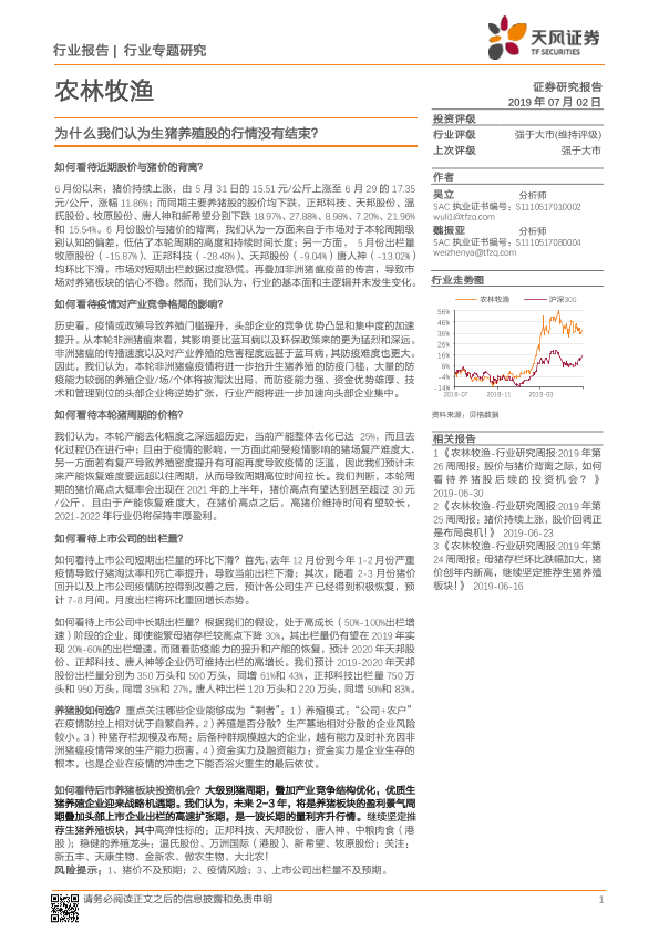 【天风证券】【20190702】农林牧渔行业专题研究:为什么我们认为生猪养殖股的行情没有结束?-10页