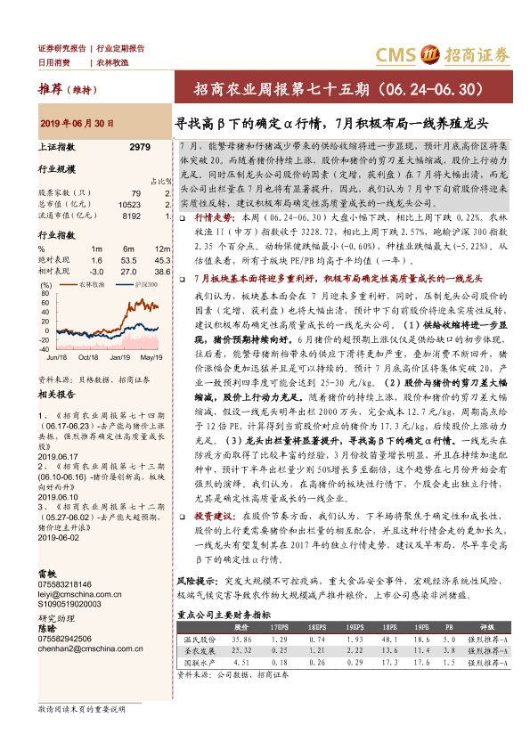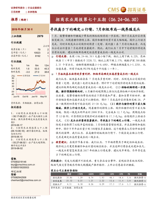 【海通证券】【20190630】招商农业周报第七十五期:寻找高β下的确定α行情,7月积极布局一线养殖龙头-25页