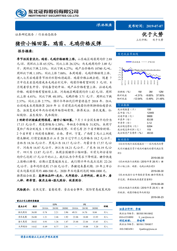 【东北证券】【20190707】20190707-东北证券-农林牧渔行业动态报告:猪价小幅回落,鸡苗、毛鸡价格反弹-11页