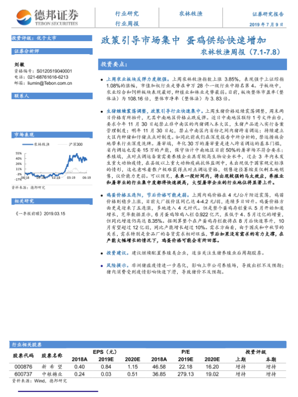 【德邦证券】【20190709】20190709-德邦证券-农林牧渔周报:政策引导市场集中 蛋鸡供给快速增加-9页