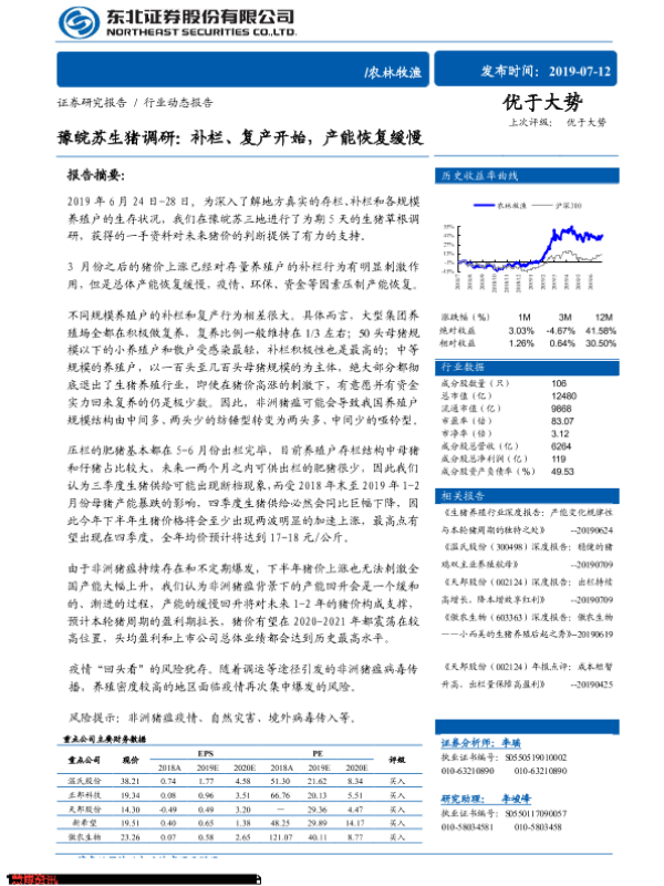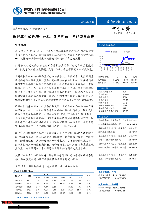 【东北证券】【20190712】豫皖苏生猪调研:补栏、复产开始,产能恢复缓慢-10页