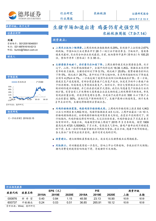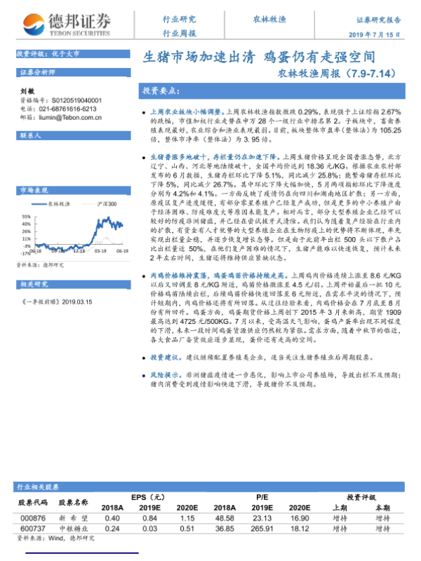 【德邦证券】【20190715】20190715-德邦证券-农林牧渔周报:生猪市场加速出清 鸡蛋仍有走强空间-11页