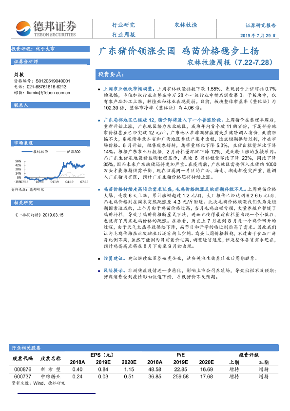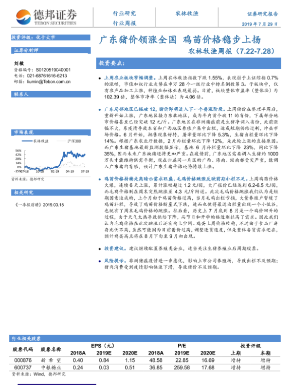 【德邦证券】【20190729】20190729-德邦证券-农林牧渔周报:广东猪价领涨全国 鸡苗价格稳步上扬-9页