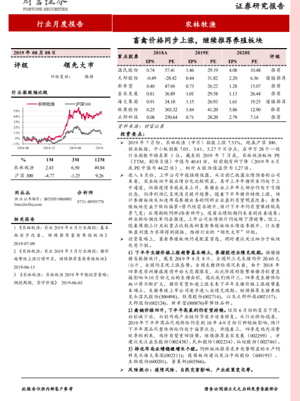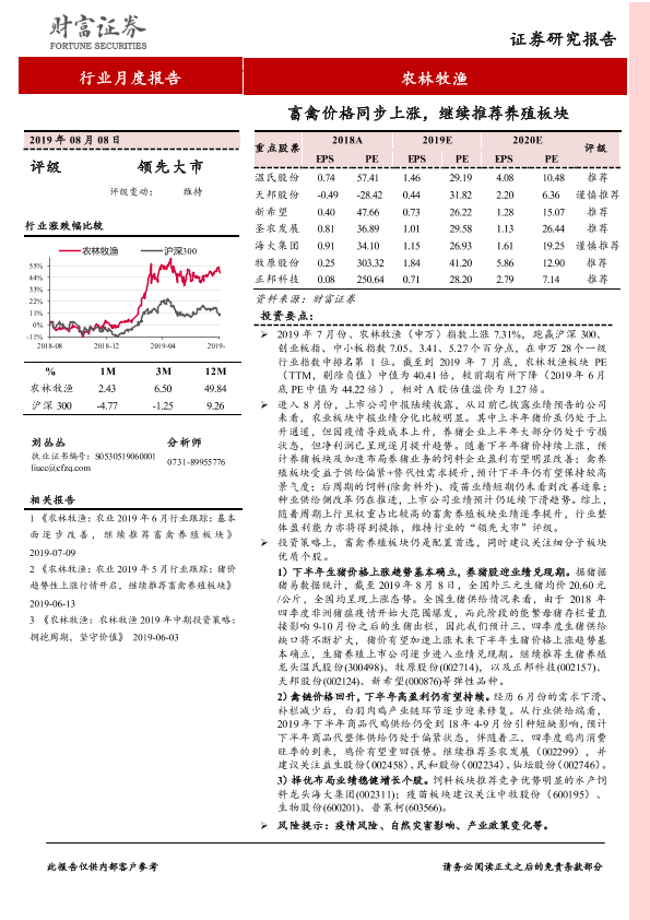 【财信证券】【20190808】农林牧渔行业月度报告:畜禽价格同步上涨,继续推荐养殖板块-13页