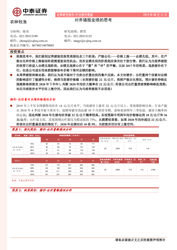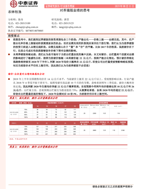 【中泰证券】【20190811】农林牧渔:对养猪股业绩的思考-12页