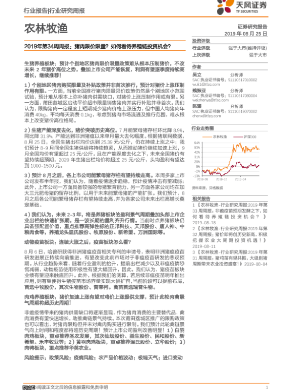 【天风证券】【20190825】2019年第34周周报:猪肉限价限量?如何看待养殖链投资机会?-14页