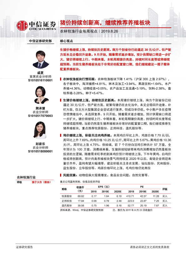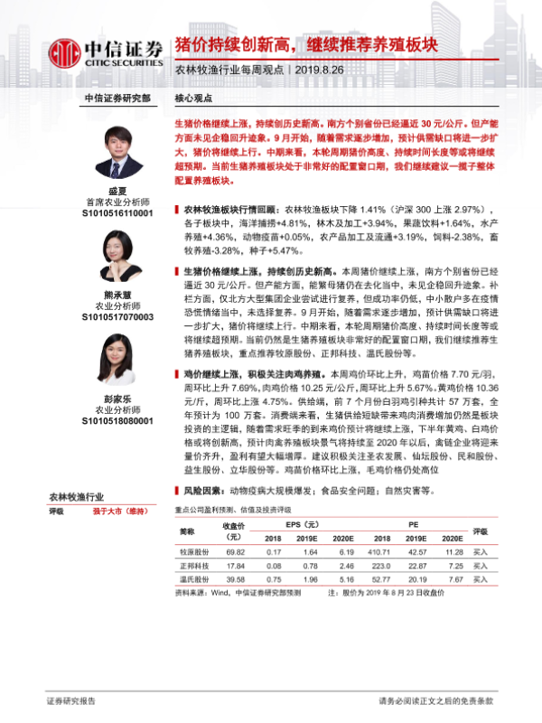 【中信证券】【20190826】20190826-中信证券-农林牧渔行业每周观点:猪价持续创新高,继续推荐养殖板块-6页