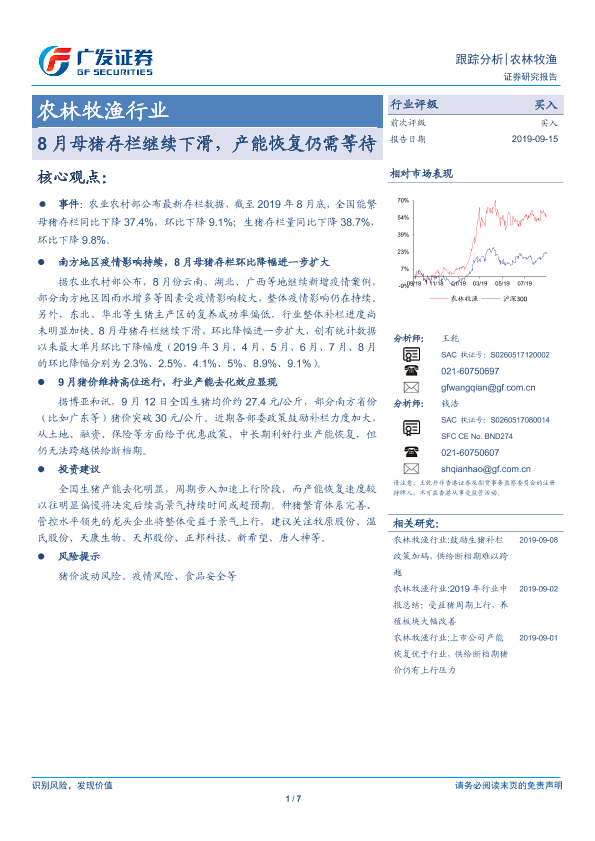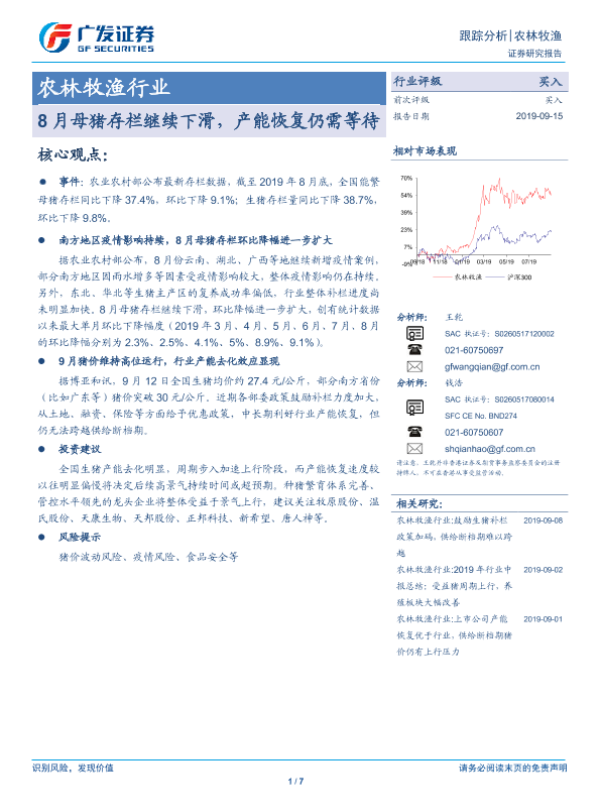 【广发证券】【20190915】农林牧渔行业:8月母猪存栏继续下滑,产能恢复仍需等待-7页