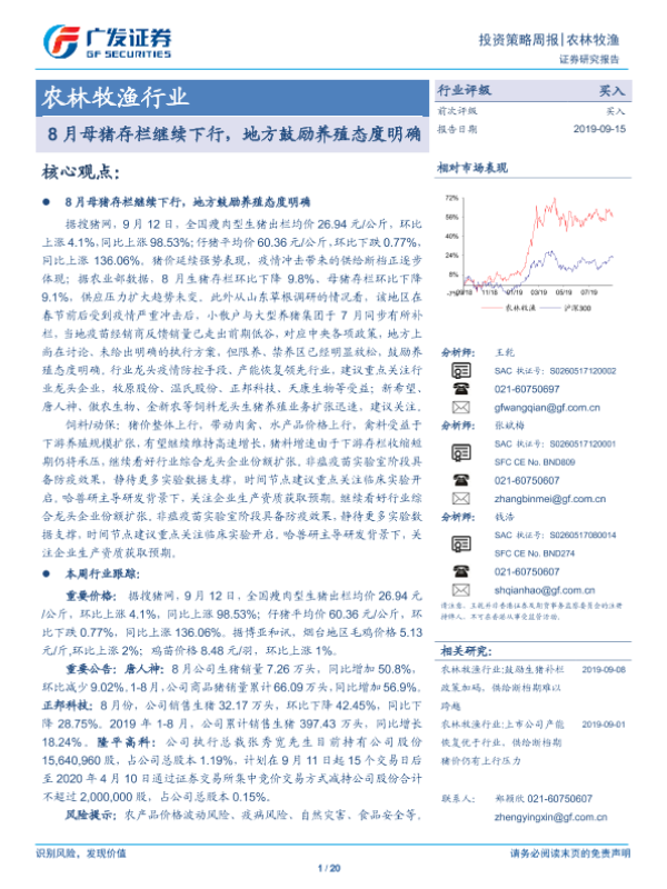 【广发证券】【20190915】20190915-广发证券-农林牧渔行业投资策略周报:8月母猪存栏继续下行,地方鼓励养殖态度明确-20页