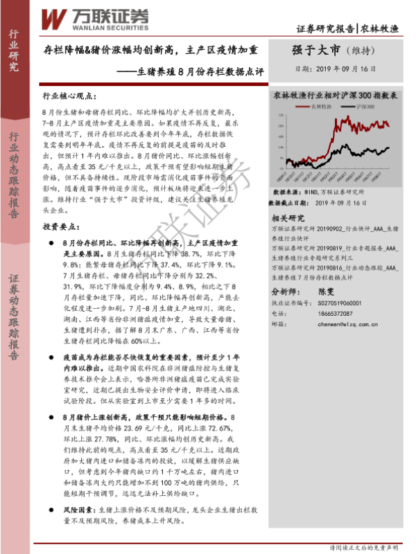 【万联证券】【20190916】生猪养殖8月份存栏数据点评:存栏降幅&猪价涨幅均创新高,主产区疫情加重-6页