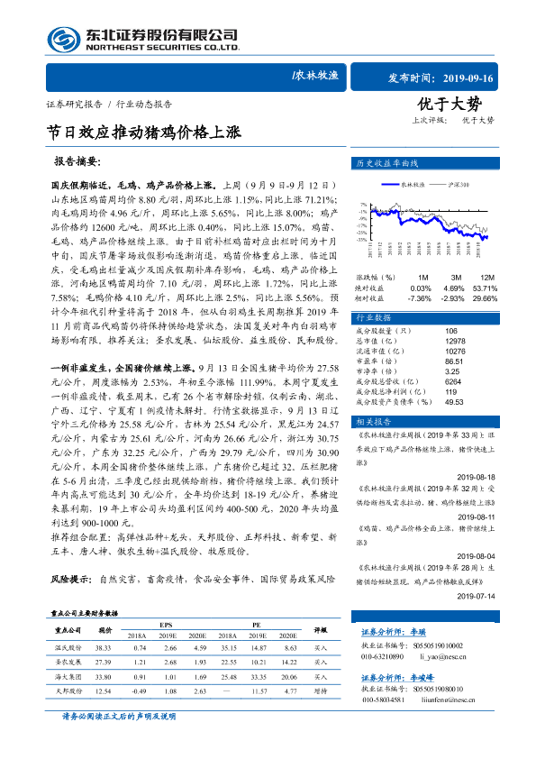 【东北证券】【20190916】节日效应推动猪鸡价格上涨-11页