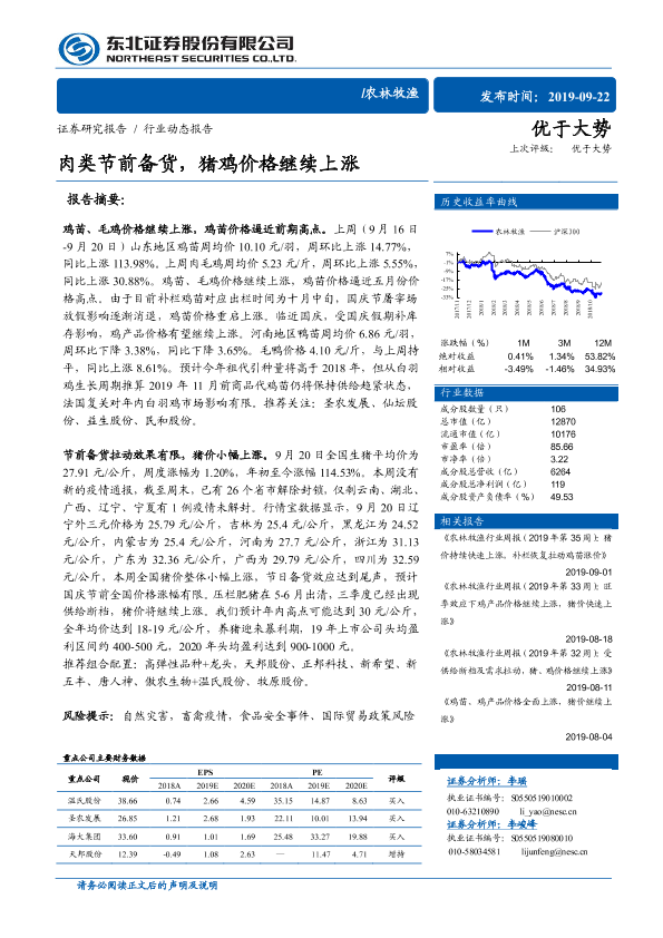 【东北证券】【20190922】20190922-东北证券-农林牧渔行业动态报告:肉类节前备货,猪鸡价格继续上涨-11页