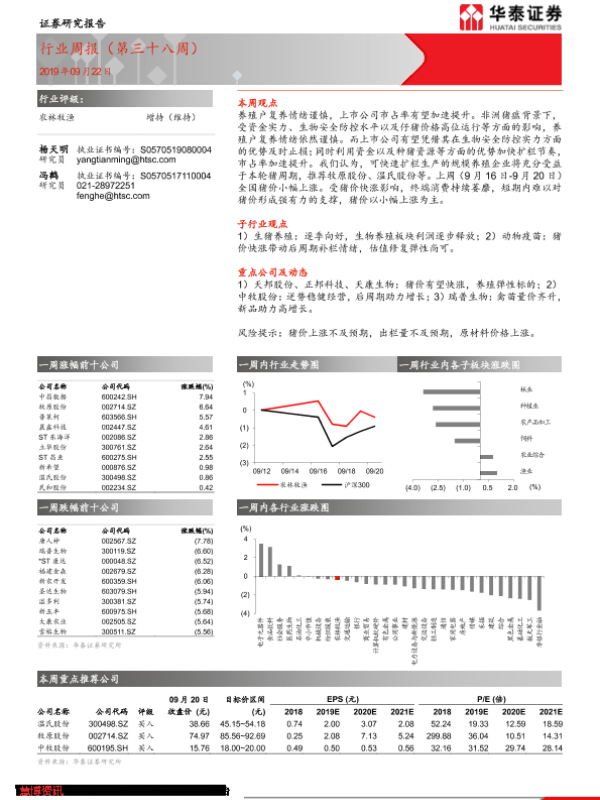 【华泰证券】【20190922】20190922-华泰证券-农林牧渔行业周报(第三十八周)-11页