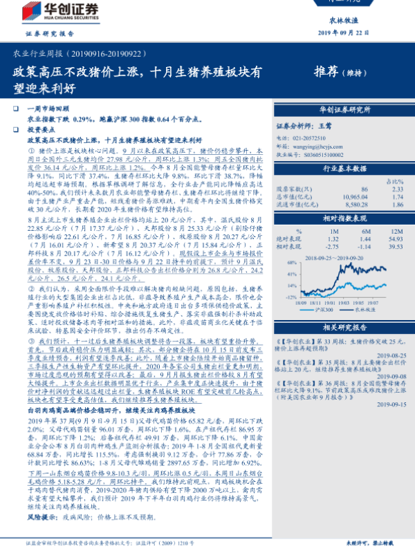 【华创证券】【20190922】农业行业周报:政策高压不改猪价上涨,十月生猪养殖板块有望迎来利好-37页