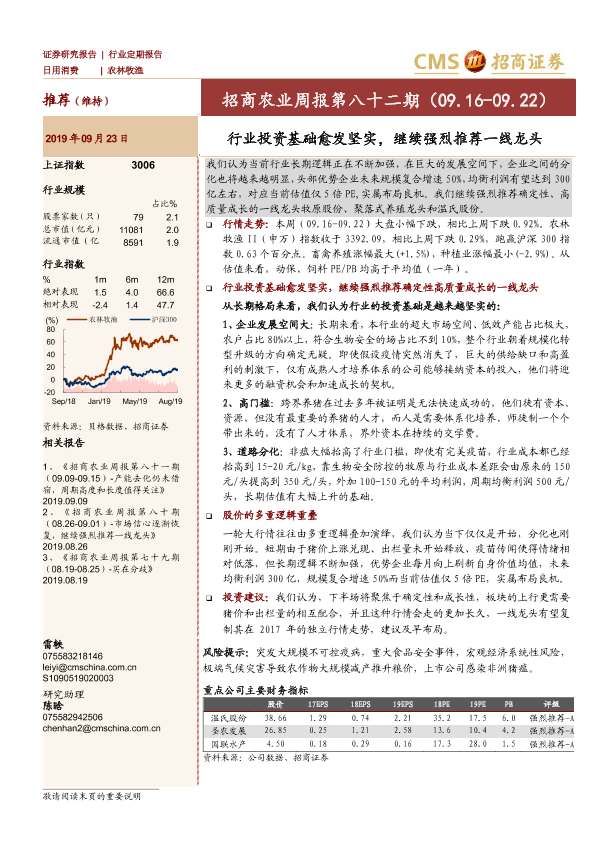 【海通证券】【20190923】招商农业周报第八十二期:行业投资基础愈发坚实,继续强烈推荐一线龙头-24页