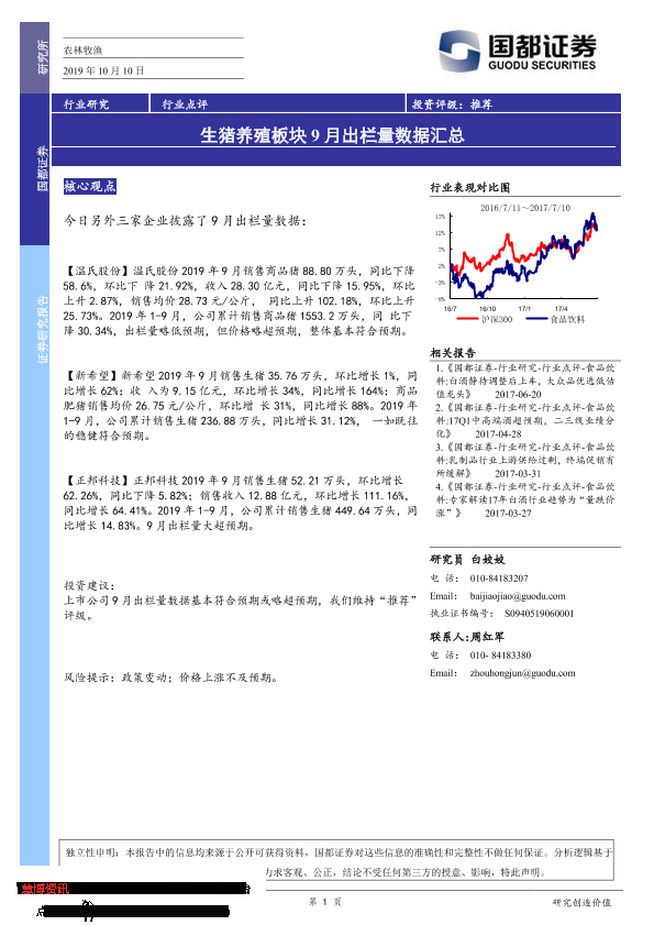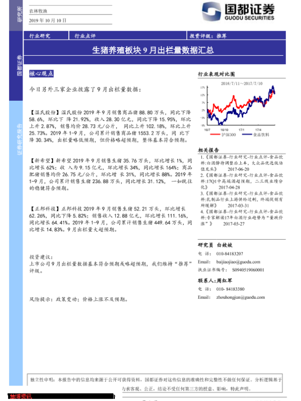 【国都证券】【20191010】农林牧渔行业点评:生猪养殖板块9月出栏量数据汇总-2页
