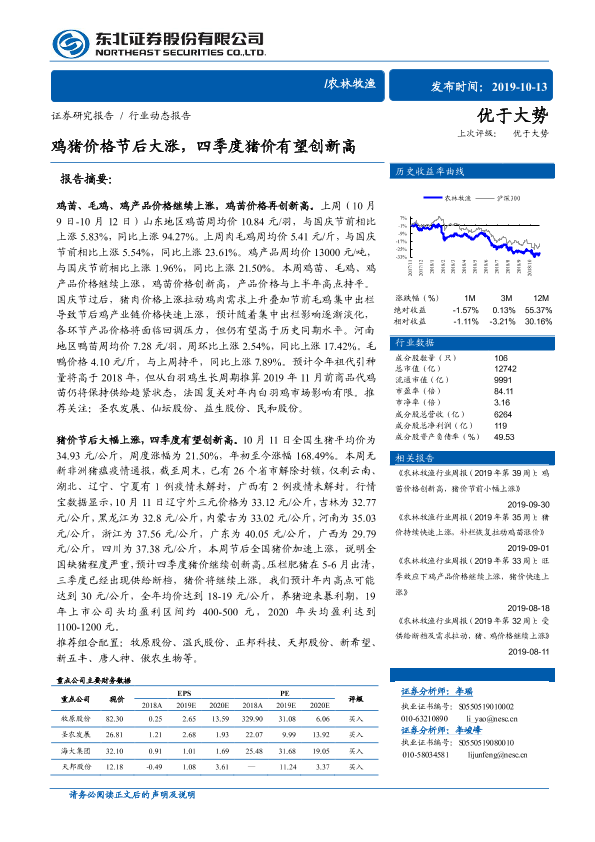【东北证券】【20191013】20191013-东北证券-农林牧渔行业动态报告:鸡猪价格节后大涨,四季度猪价有望创新高-11页
