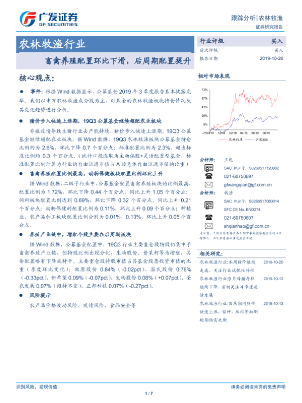 【广发证券】【20191026】农林牧渔:畜禽养殖配置环比下滑,后周期配置提升-7页