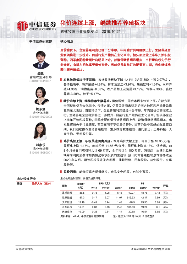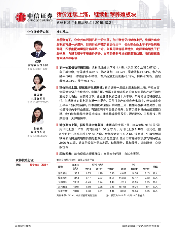 【中信证券】【20191021】20191021-中信证券-农林牧渔行业每周观点:猪价连续上涨,继续推荐养殖板块-6页