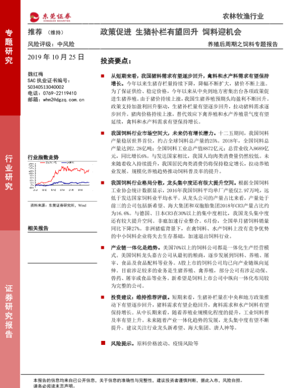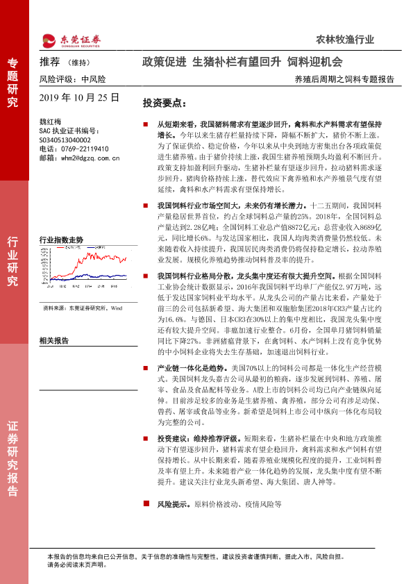 【东莞证券】【20191025】20191025-东莞证券-养殖后周期之饲料专题报告:政策促进 生猪补栏有望回升 饲料迎机会-16页