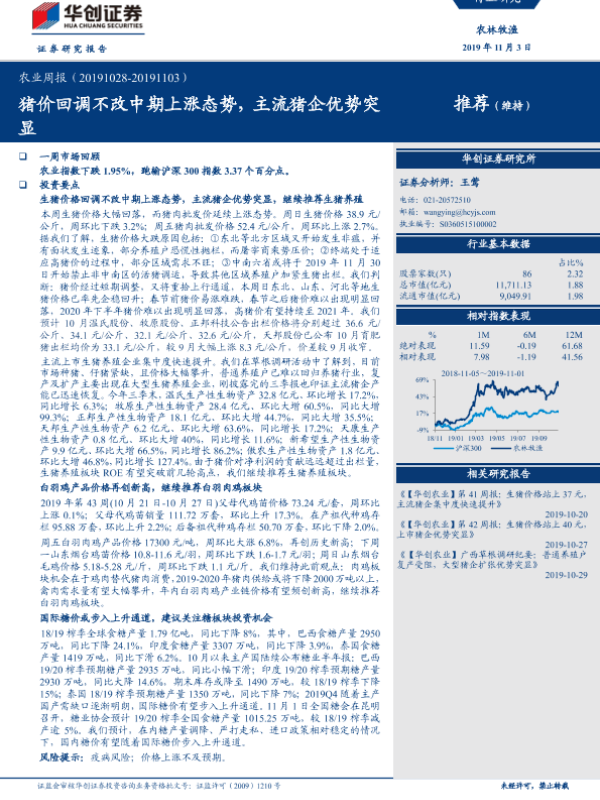 【华创证券】【20191103】20191103-华创证券-农业周报:猪价回调不改中期上涨态势,主流猪企优势突显-40页