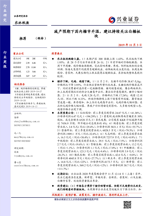 【兴业证券】【20191103】减产预期下国内糖市升温,建议持续关注白糖板块-15页