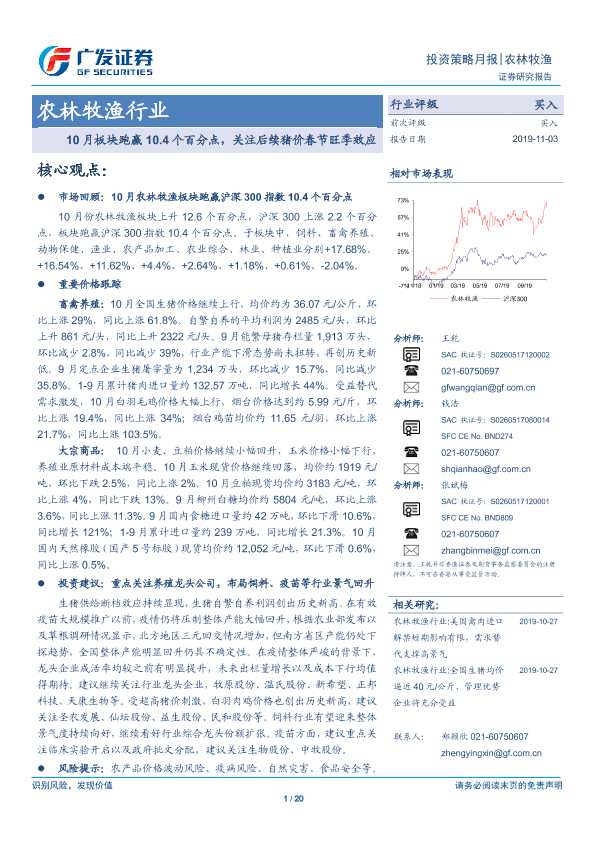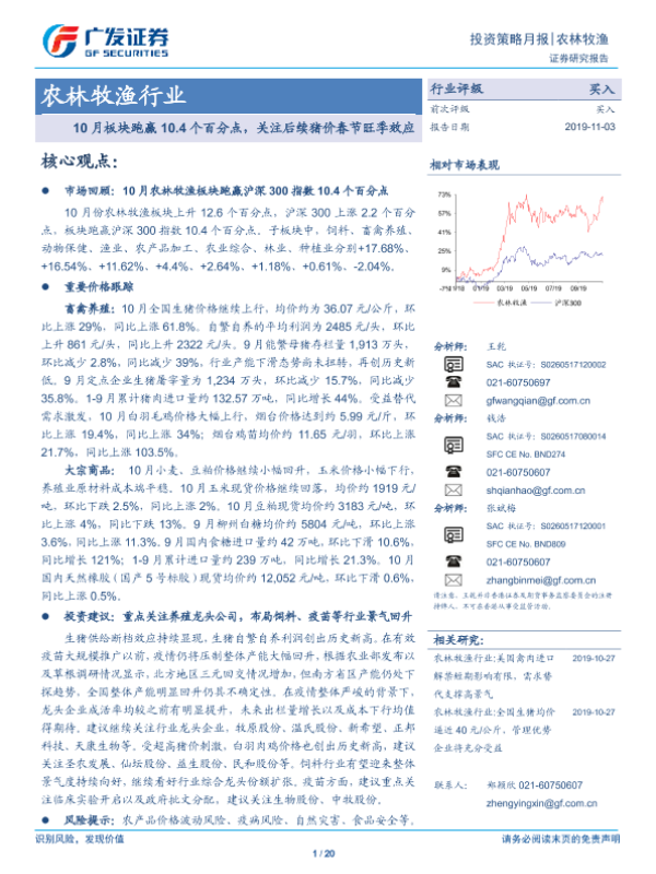 【广发证券】【20191103】20191103-广发证券-农林牧渔行业投资策略月报:10月板块跑赢10.4个百分点,关注后续猪价春节旺季效应-20页