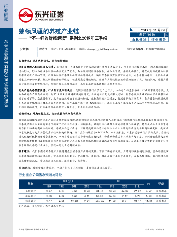【东兴证券】【20191104】农林牧渔:“不一样的财报解读”系列之2019年三季报-独领风骚的养殖产业链-8页