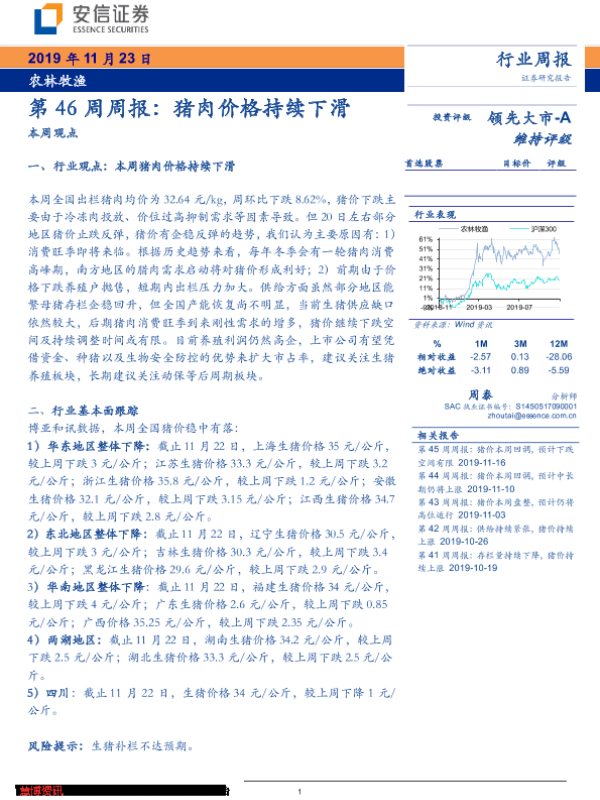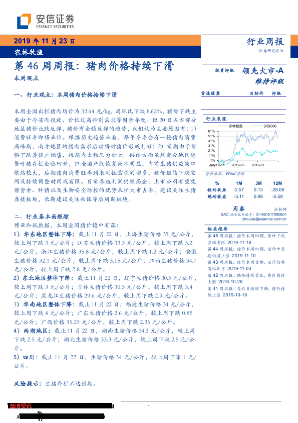 【安信证券】【20191123】第46周周报:猪肉价格持续下滑-20页