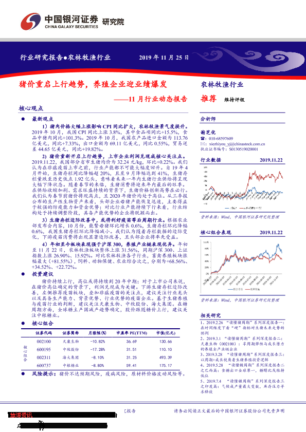 【银河证券】【20191125】20191125-中国银河-农林牧渔行业:11月行业动态报告:猪价重启上行趋势,养殖企业迎业绩爆发-18页