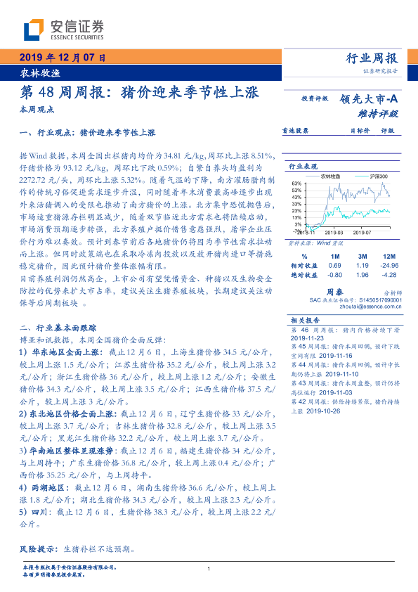 【安信证券】【20191207】第48周周报:猪价迎来季节性上涨-20页