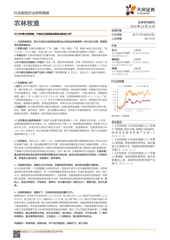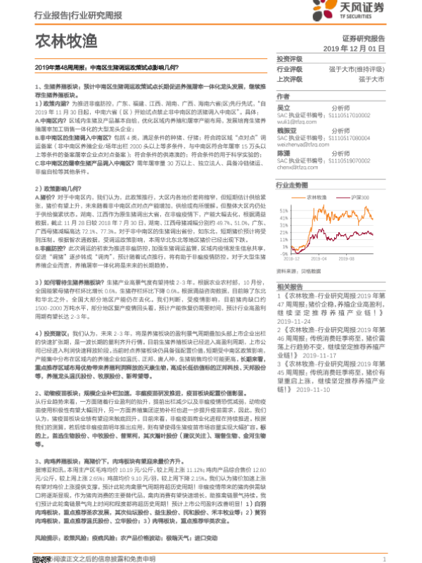 【天风证券】【20191201】农林牧渔2019年第48周周报:中南区生猪调运政策试点影响几何?-14页