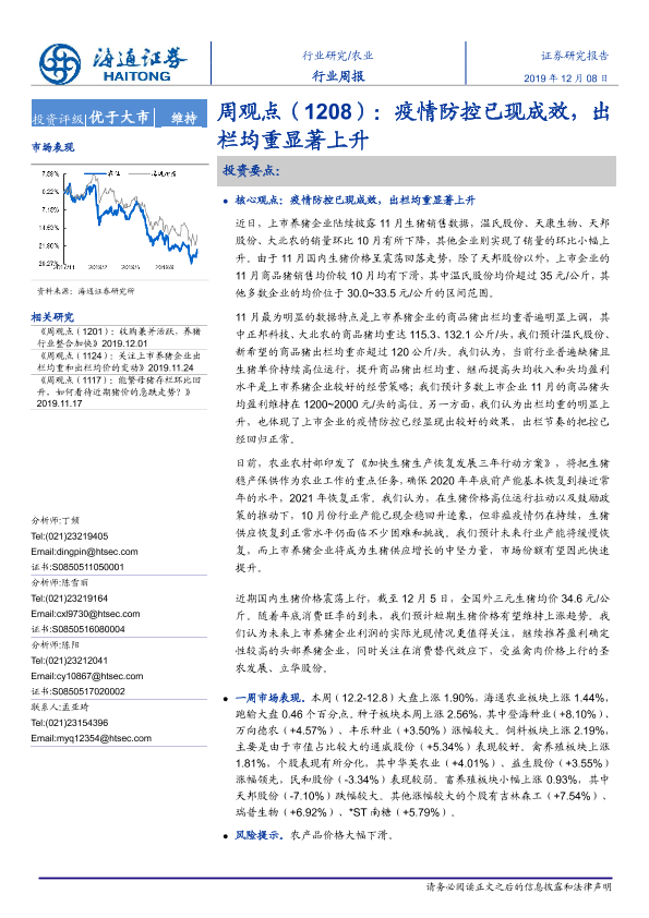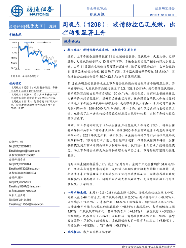 【海通证券】【20191208】农业周观点:疫情防控已现成效,出栏均重显著上升-3页