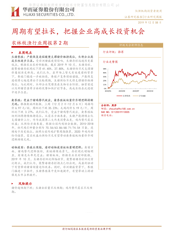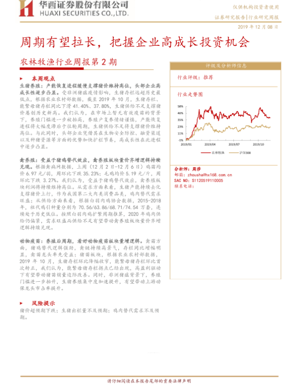 【华西证券】【20191208】农林牧渔行业周报第2期:周期有望拉长,把握企业高成长投资机会-13页