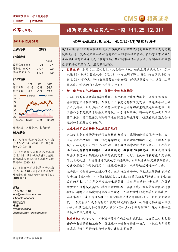 【海通证券】【20191202】农业周报第九十一期:优势企业红利期拉长,长期估值有望继续提升-26页