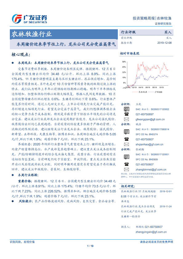 【广发证券】【20191208】20191208-广发证券-农林牧渔行业投资策略周报:本周猪价迎来季节性上行,龙头公司充分受益高景气-19页