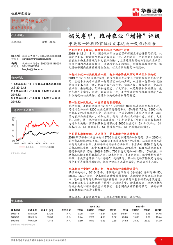 【华泰证券】【20191215】农林牧渔:中美第一阶段经贸协议文本达成一致点评报告:韬戈卷甲,维持农业“增持”评级-4页