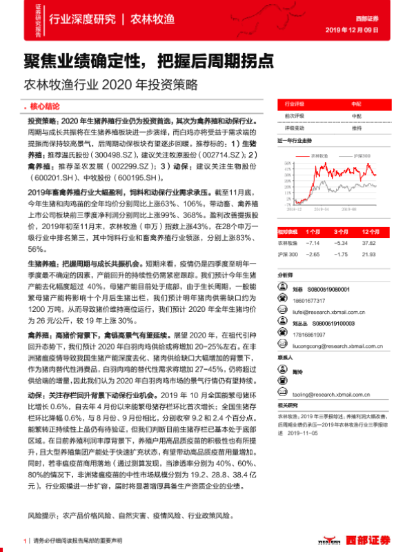【西部证券】【20191209】农林牧渔行业2020年投资策略:聚焦业绩确定性,把握后周期拐点-42页