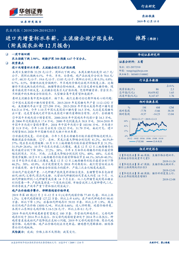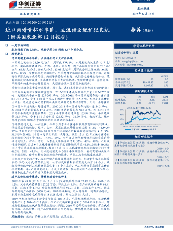 【华创证券】【20191215】20191215-华创证券-农业周报:进口肉增量杯水车薪,主流猪企迎扩张良机(附美国农业部12月报告)-48页