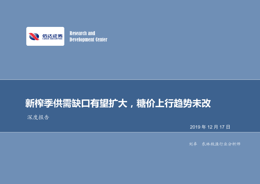 【信达证券】【20191217】新榨季供需缺口有望扩大,糖价上行趋势未改-22页