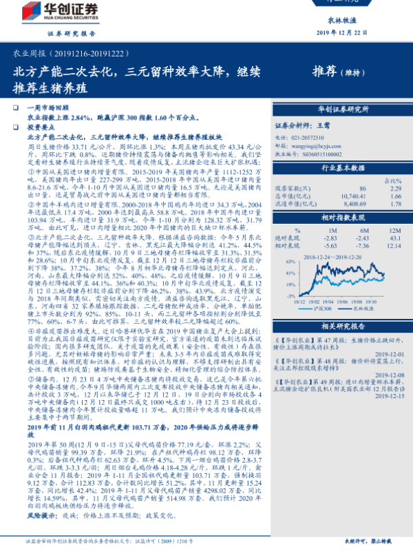 【华创证券】【20191222】20191222-华创证券-农业周报:北方产能二次去化,三元留种效率大降,继续推荐生猪养殖-44页