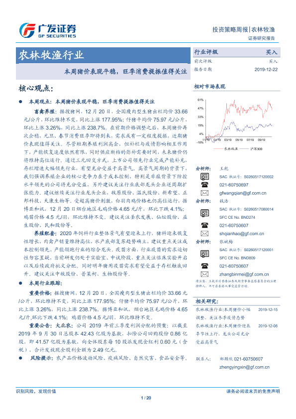 【广发证券】【20191222】20191222-广发证券-农林牧渔行业投资策略周报:本周猪价表现平稳,旺季消费提振值得关注-20页