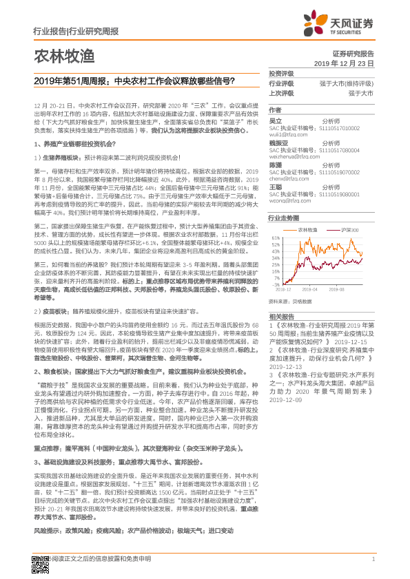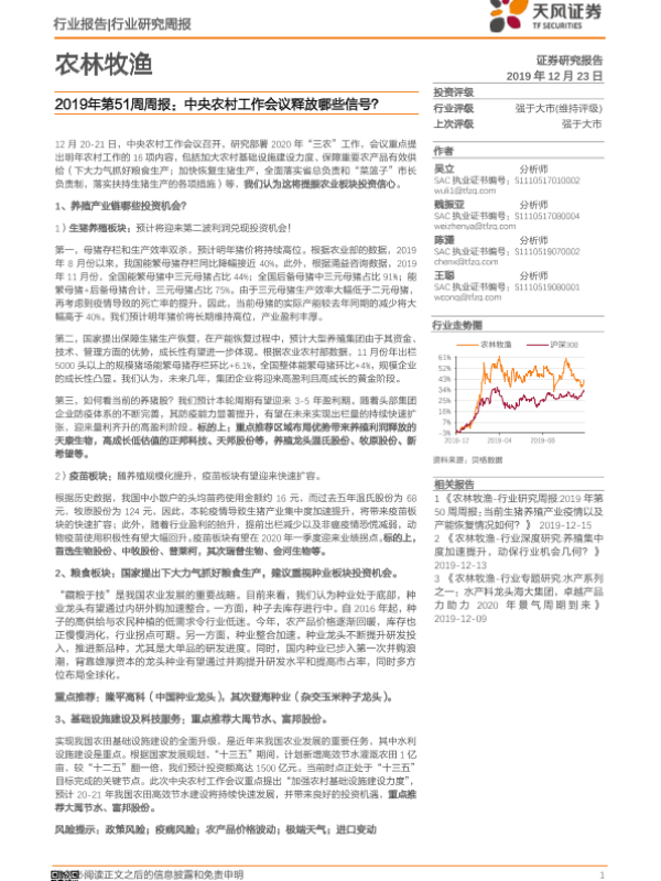 【天风证券】【20191223】农林牧渔2019年第51周周报:中央农村工作会议释放哪些信号?-14页