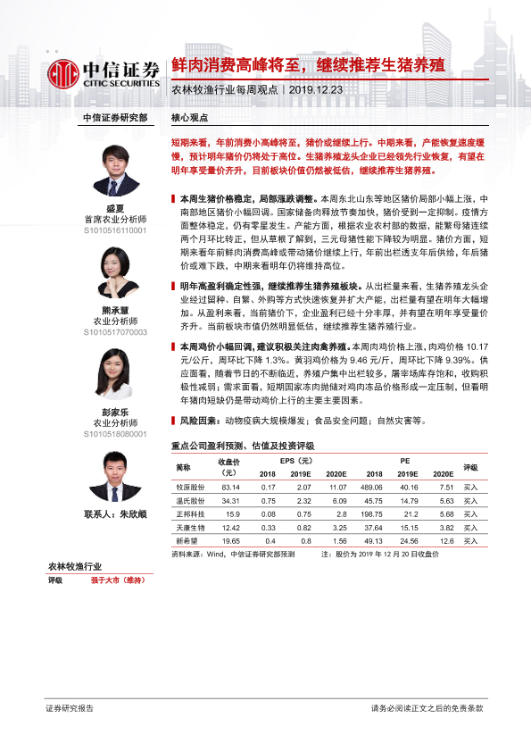 【中信证券】【20191223】农林牧渔行业每周观点:鲜肉消费高峰将至,继续推荐生猪养殖-6页