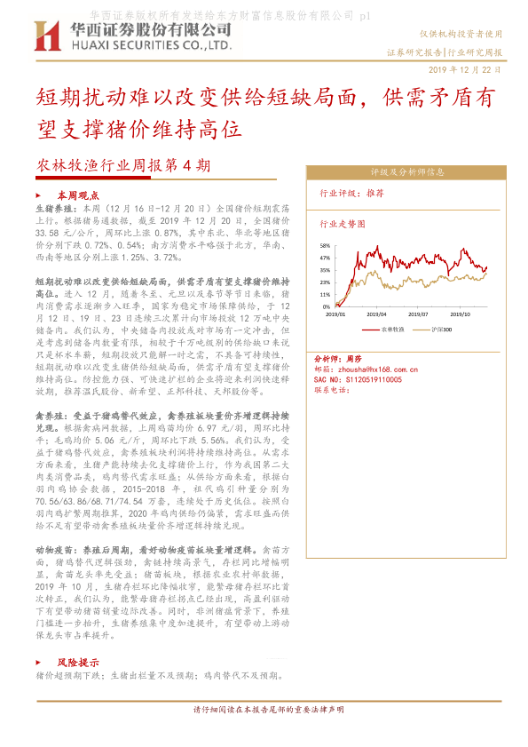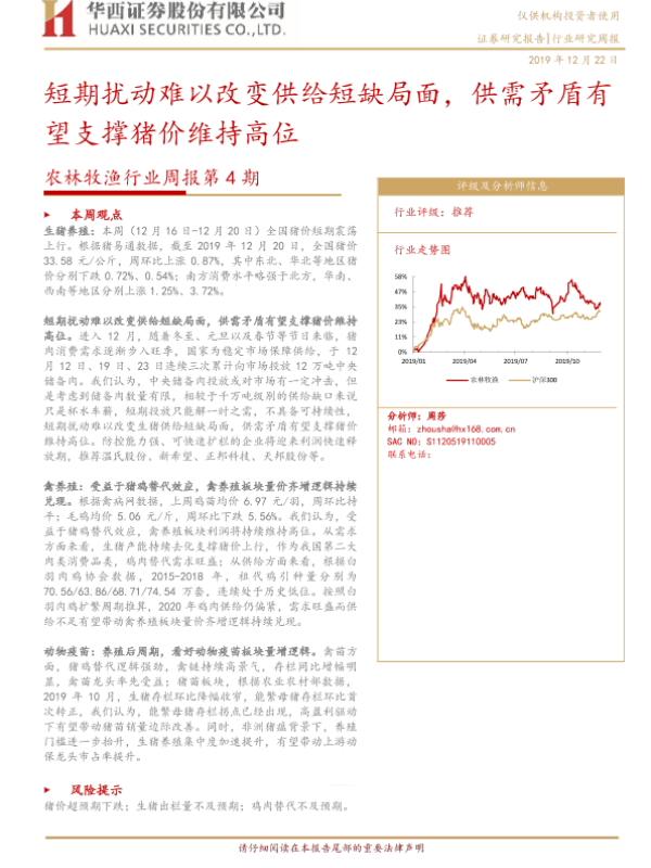 【华西证券】【20191222】农林牧渔行业周报第4期:短期扰动难以改变供给短缺局面,供需矛盾有望支撑猪价维持高位-16页
