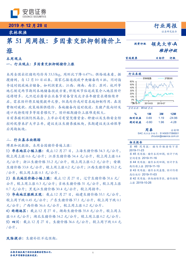 【安信证券】【20191228】20191228-安信证券-农林牧渔第51周周报:多因素交织抑制猪价上涨-20页